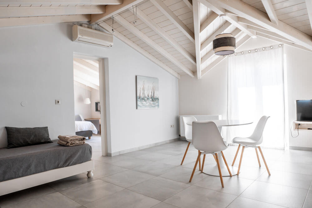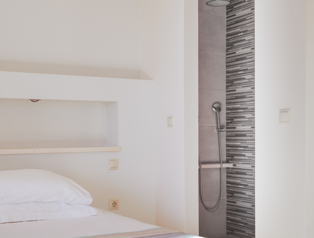 Elegant decorated and featuring a spectacular view on the brilliance of the Ionian Sea, the superior rooms are generously proportioned. The modern bathroom with its rain shower offers a further pleasant comfort.